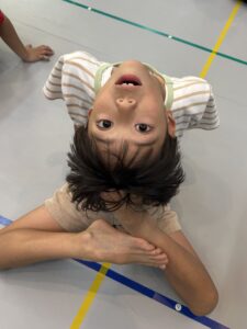 足で「いないいないばあ」が出来るように頑張っていますよ✨
