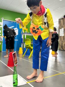まず蜘蛛の巣をくぐり抜け、こわ~い怪物に「トリックオアトリート!」の合言葉を言って、お菓子をget😁💫