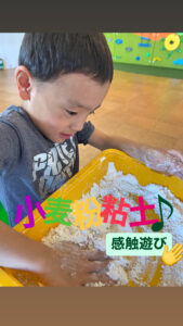 週末には小麦粉粘土で感触遊びや地域クリーン活動、