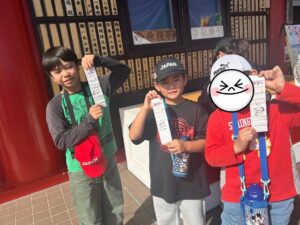 おみくじをみんなで見せ合いっこして、「大吉だ!」と喜んでいました🎵