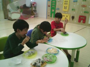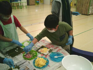 お友だちと、恵方巻に使う材料やクッキングの役割を相談しながら